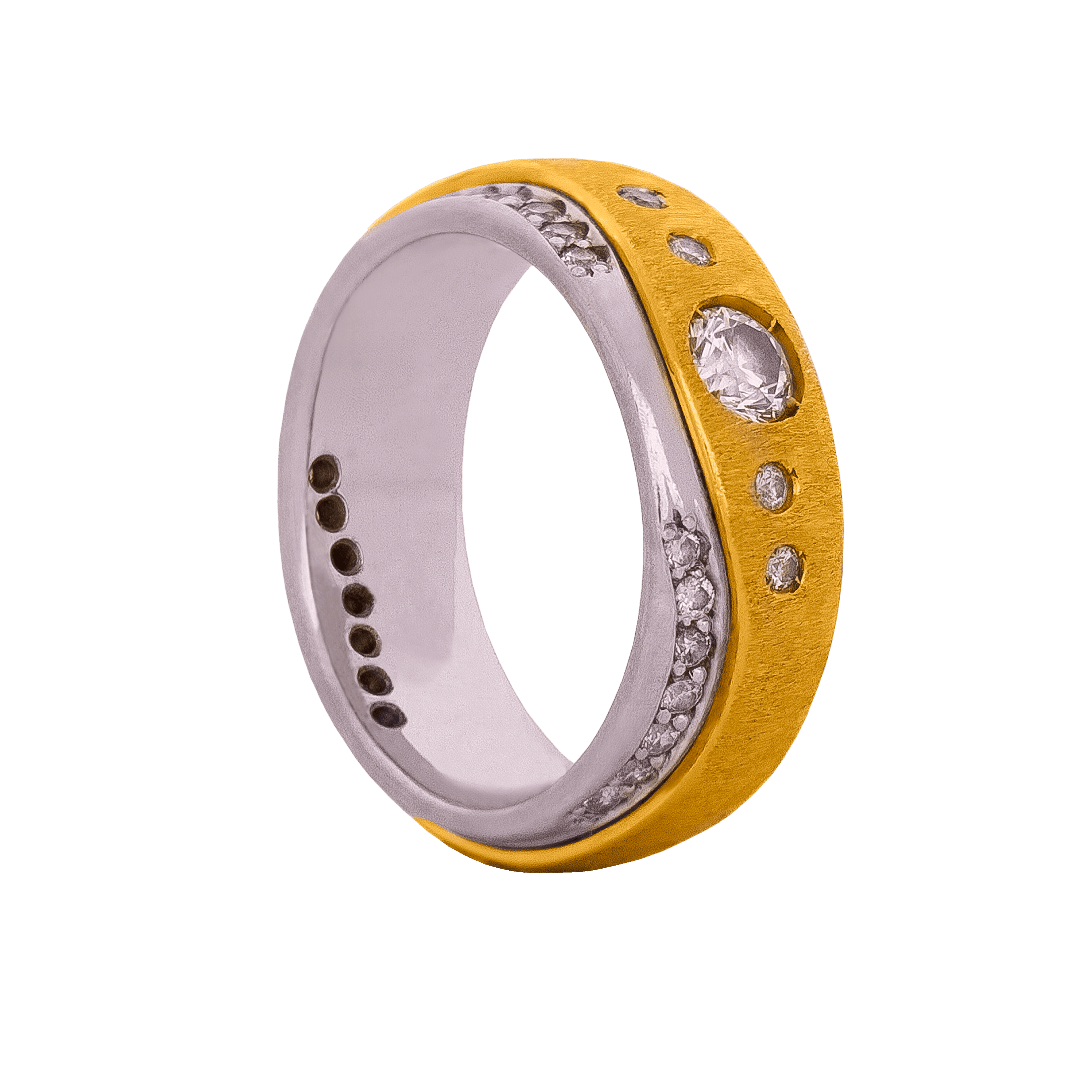 A peça pode ser confeccionada tanto em diamantes ou zircônias. Pode ser produzida sem as pedras (Masculina).