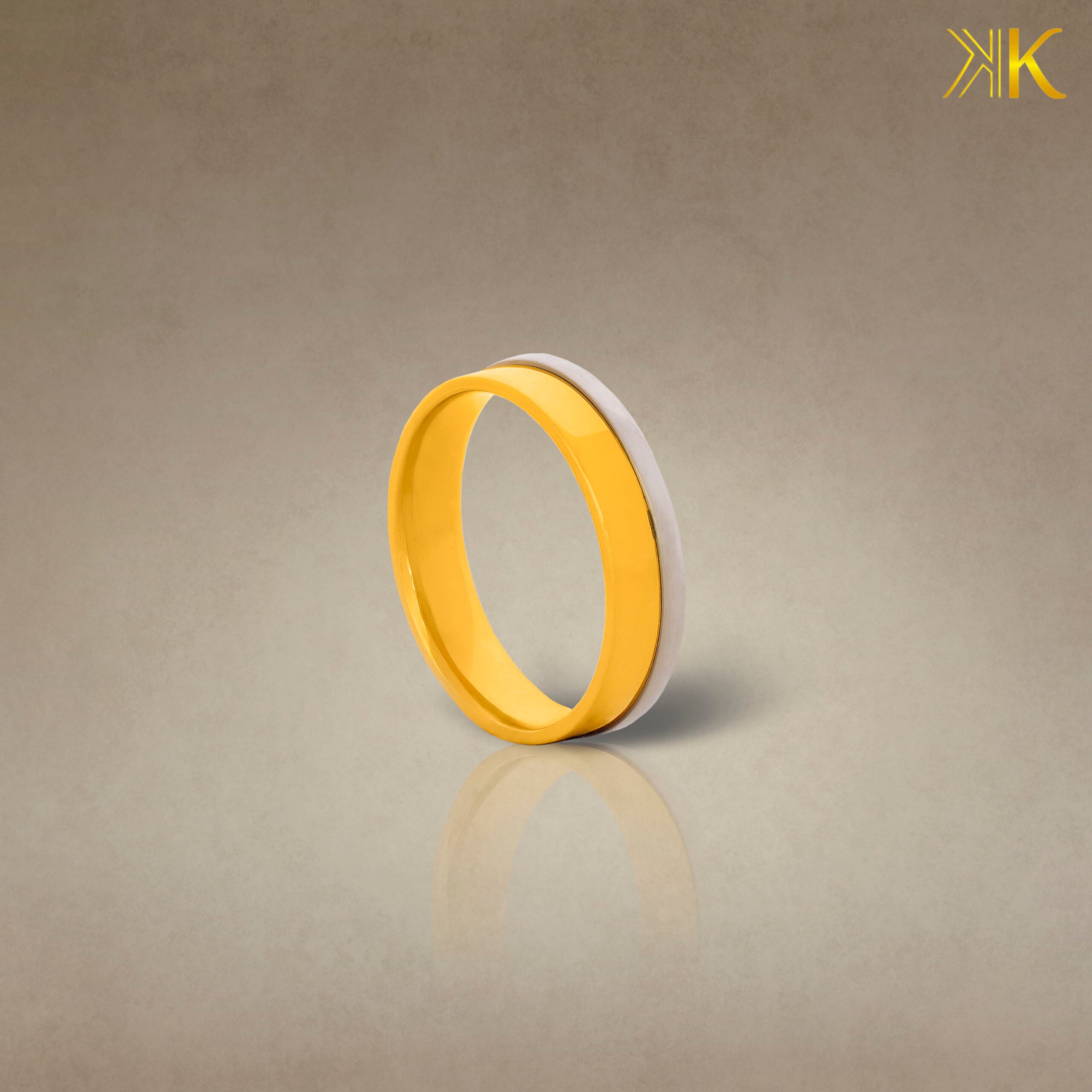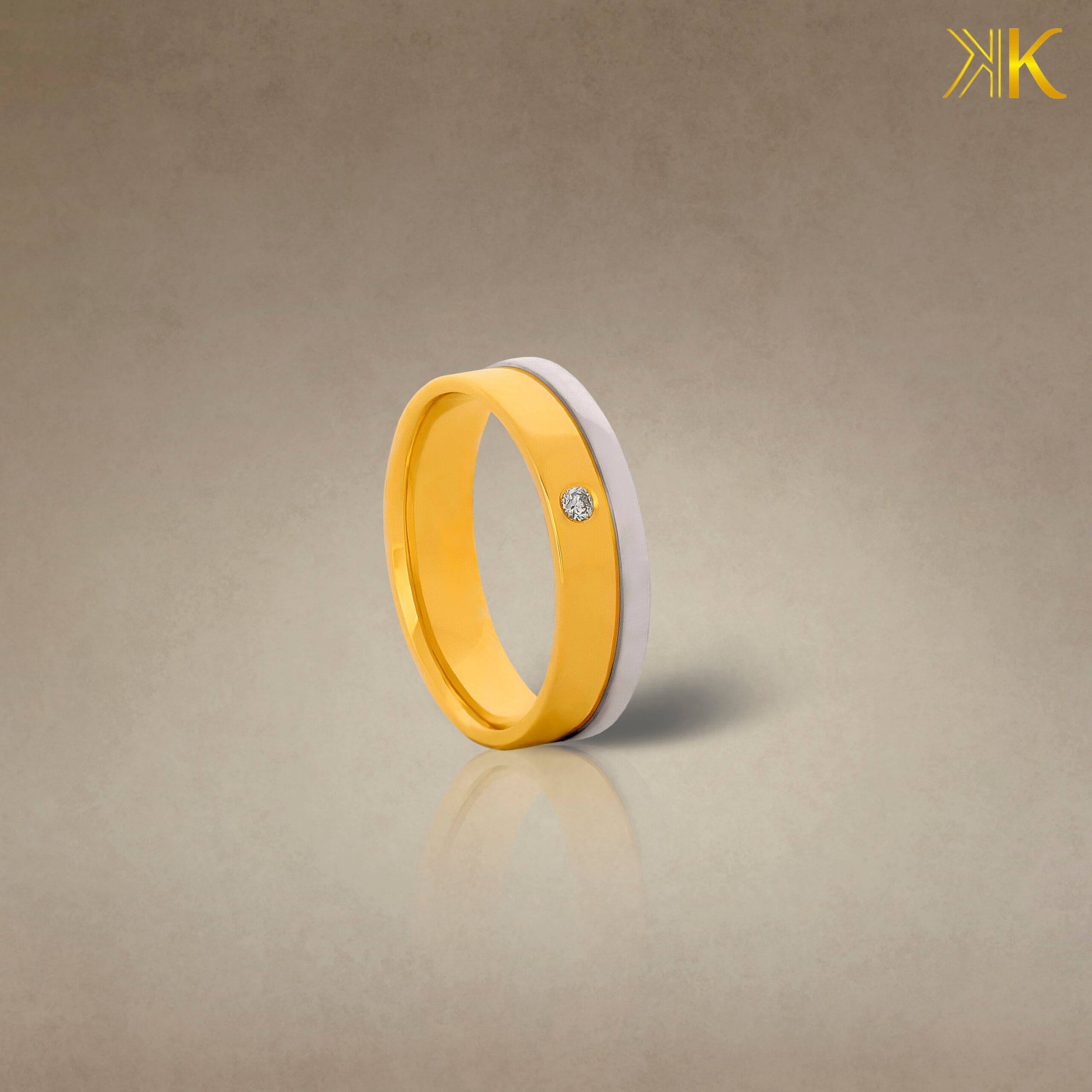 Descrição: Detalhe Circular na lateral da aliança em ouro branco