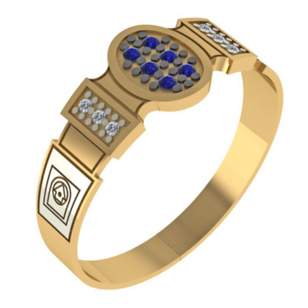 Detalhes – Emblemas, tamanho do aro e cor da pedra central de acordo com curso (imagem meramente ilustrativa)