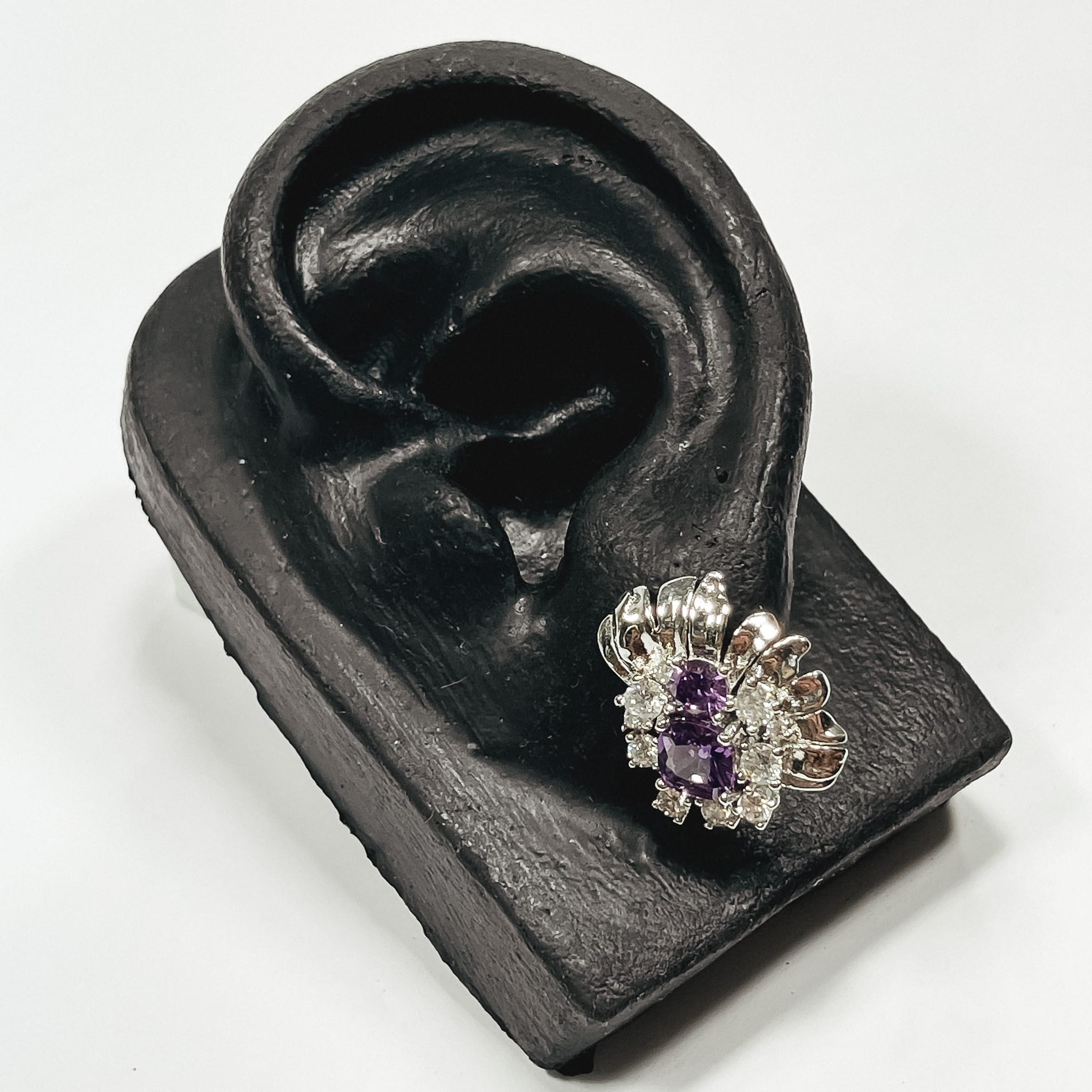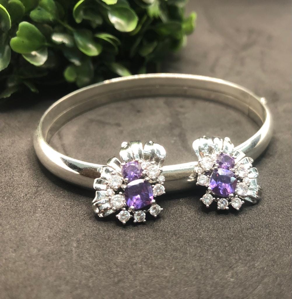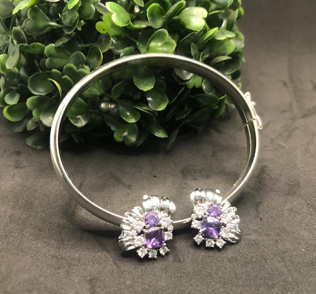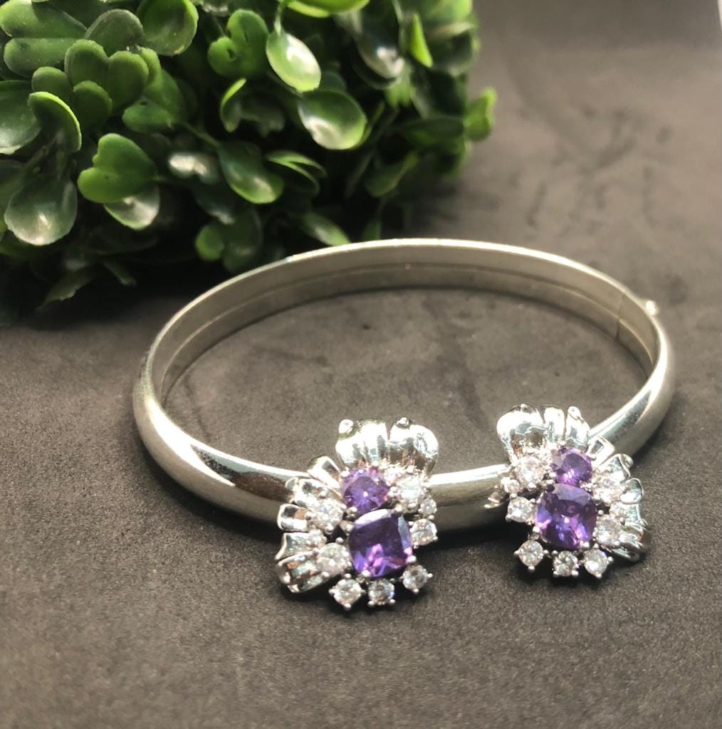 Pedras: Zirconias Quadradas Brancas e Cristais cor de Ametista redondos, um médio e um grande.