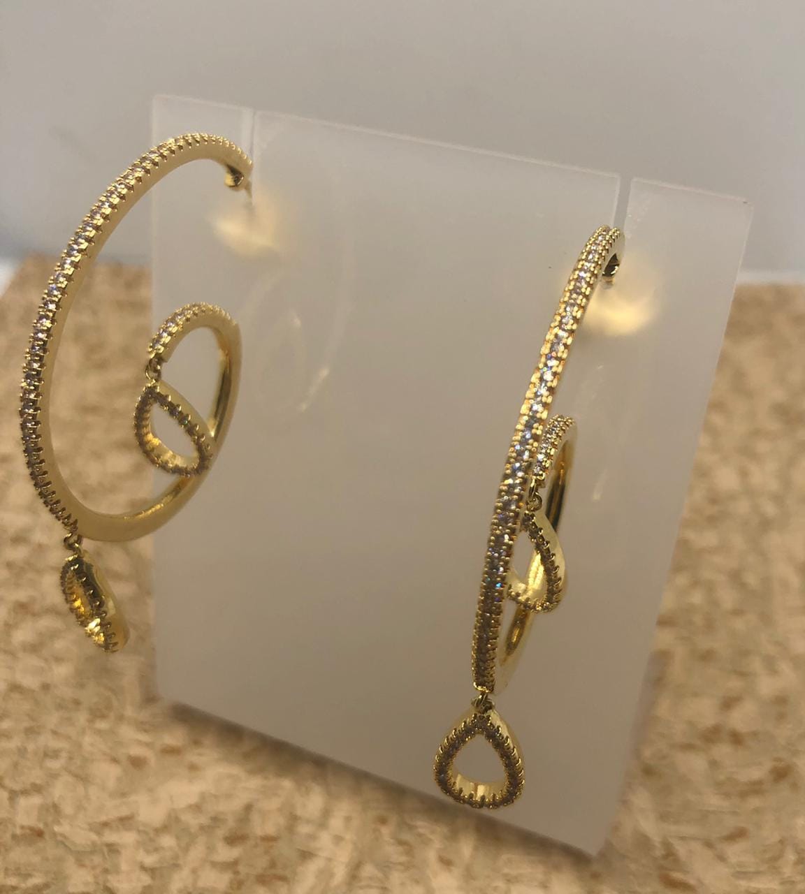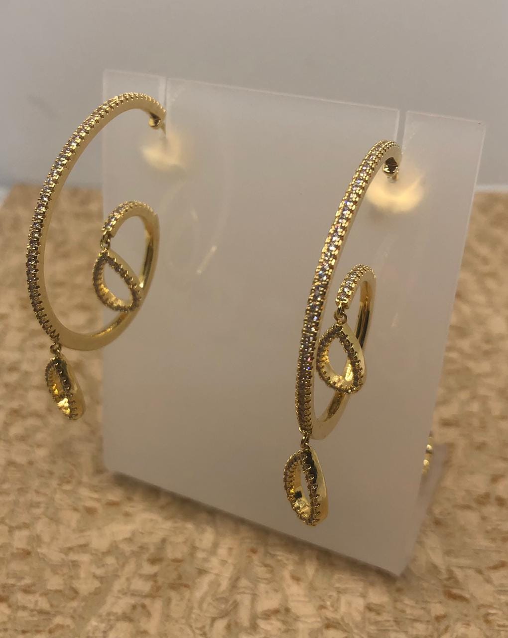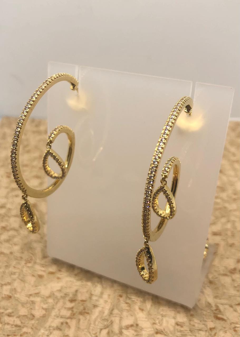 Pedras: Brinco todo trabalhado com pedras Zirconias