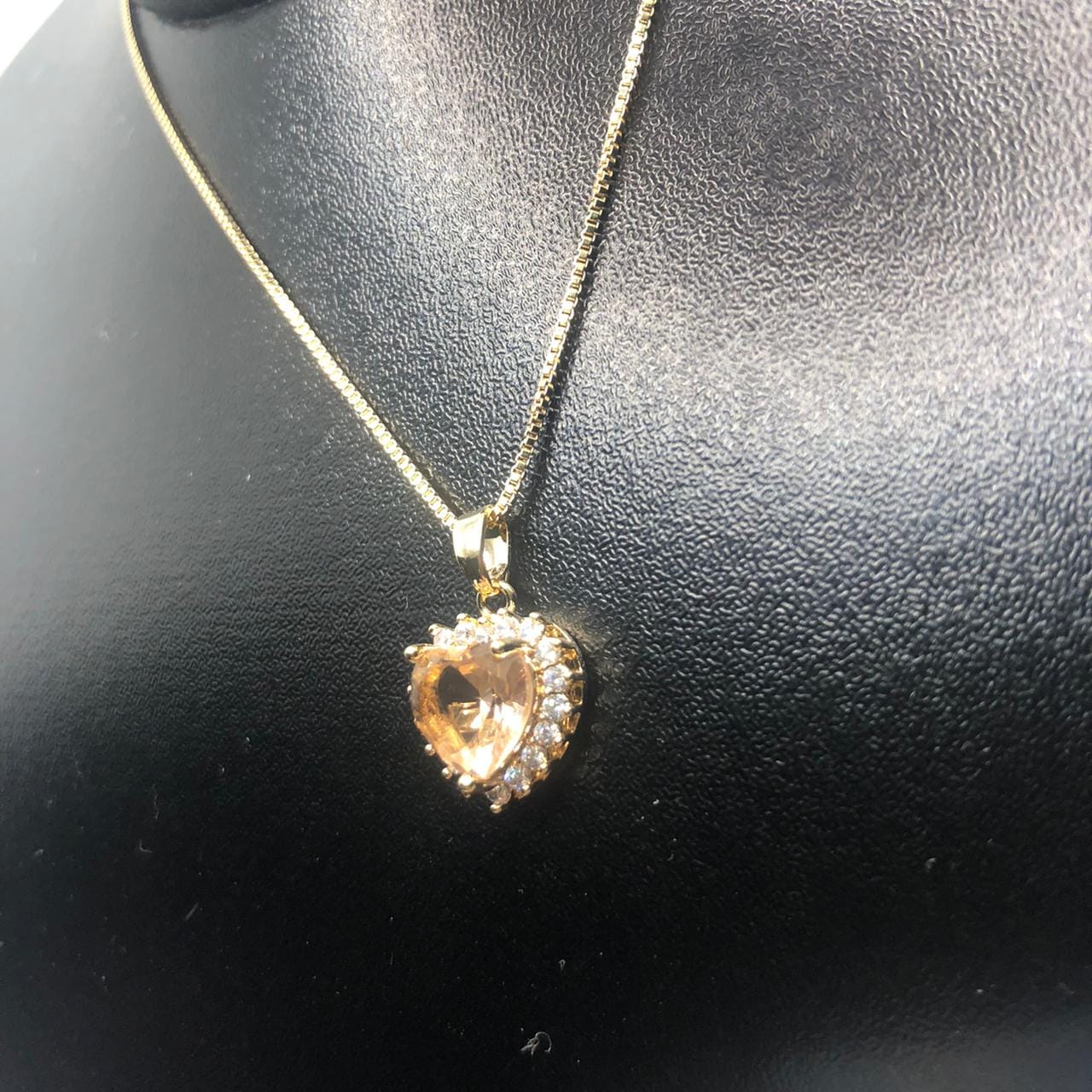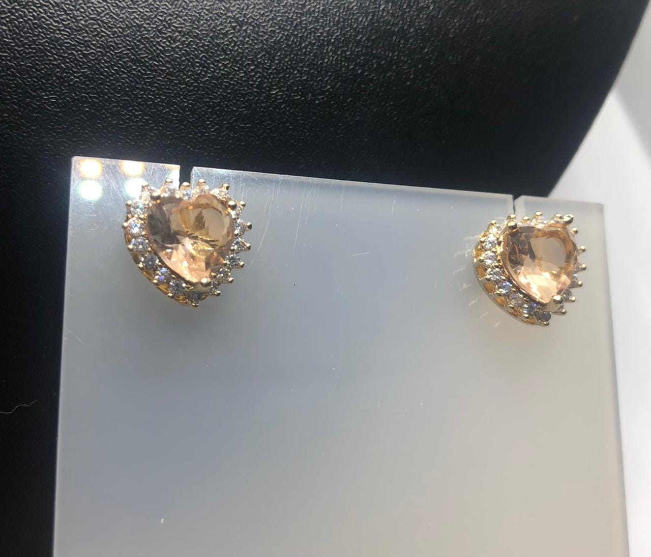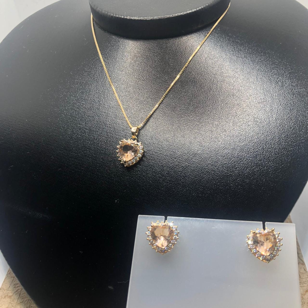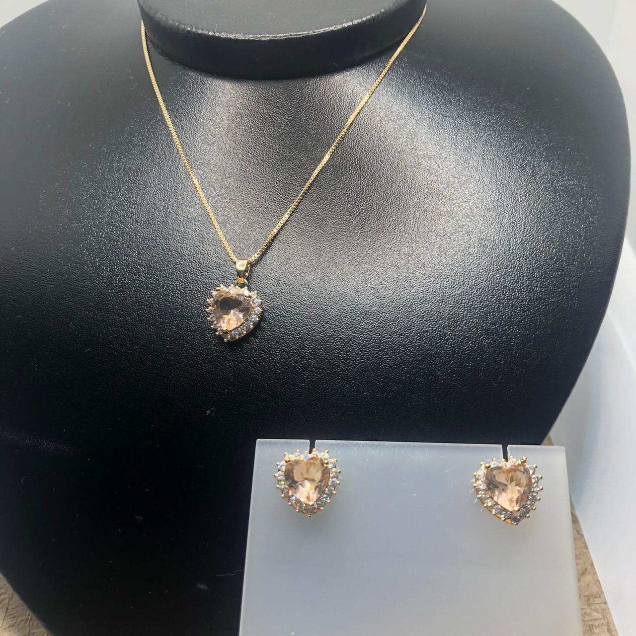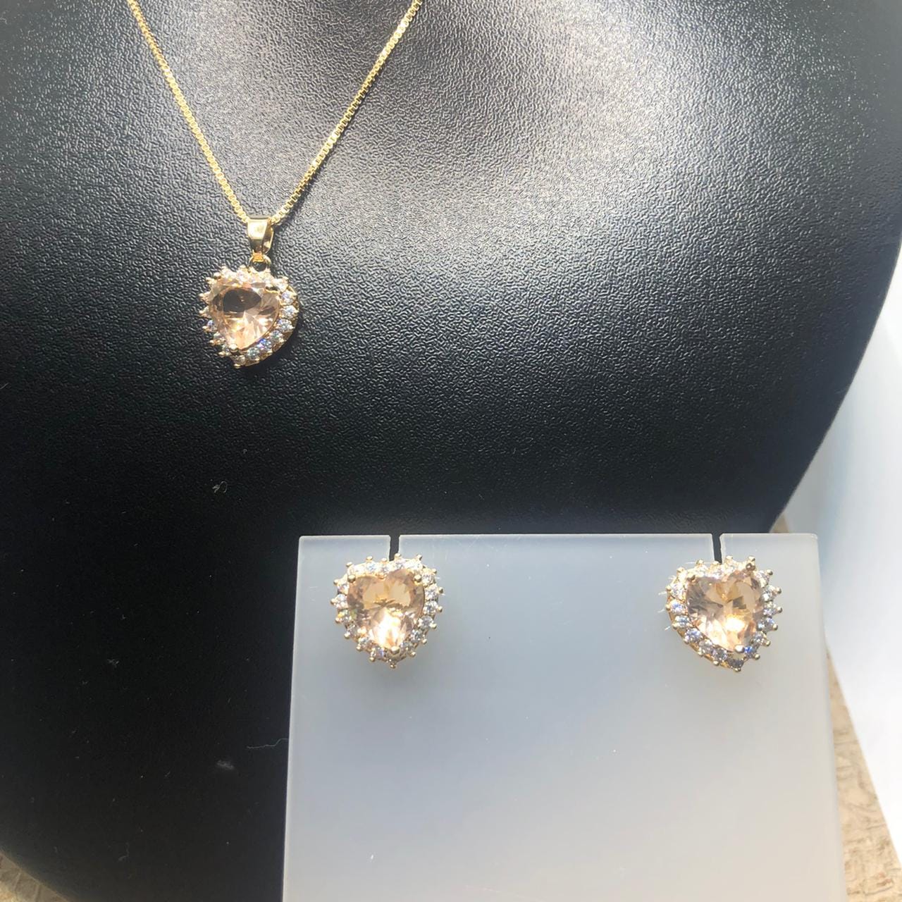 Pedras: Zirconias brancas ovais ao redor da peça de cristal rose em formato de coração