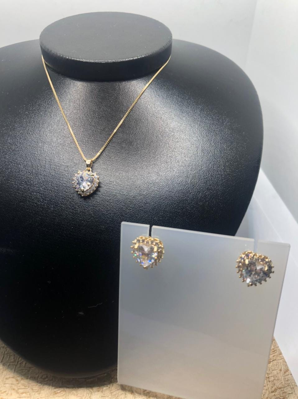 Pedras: Zirconias Grandes e pequenas no formato Oval com cristais brancos em formato de coração ao centro