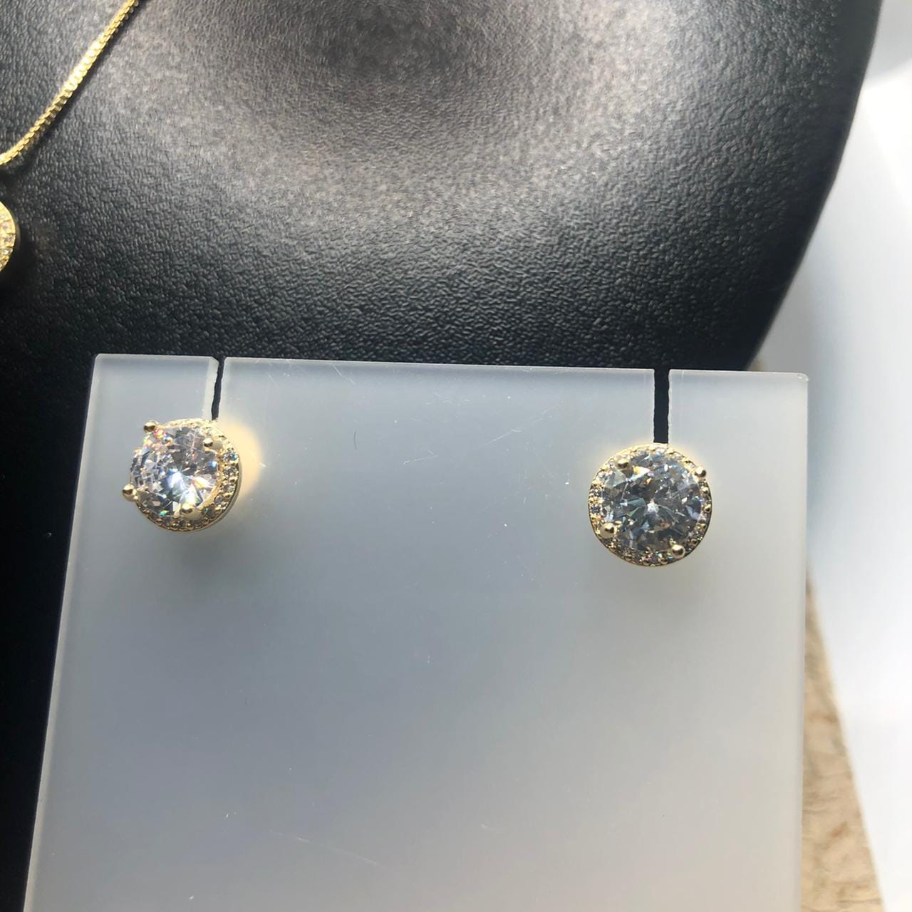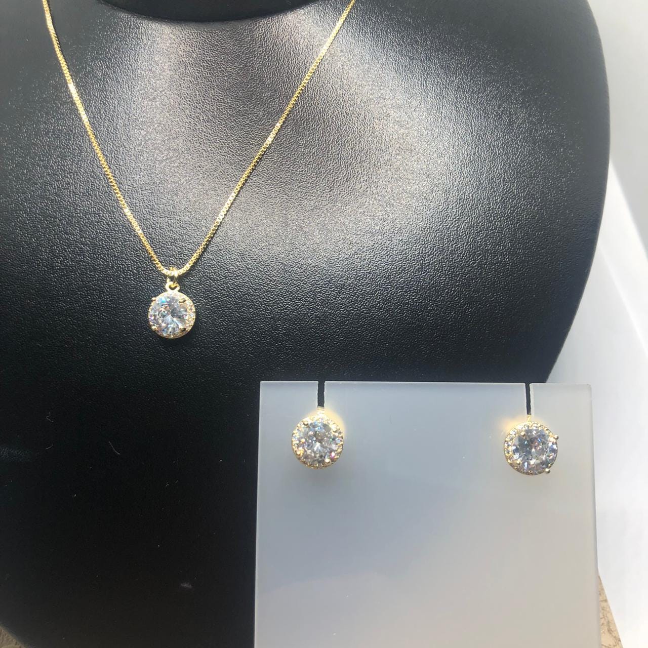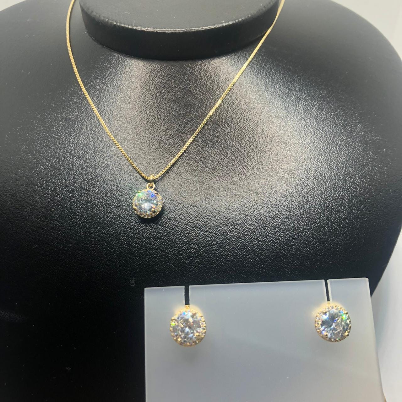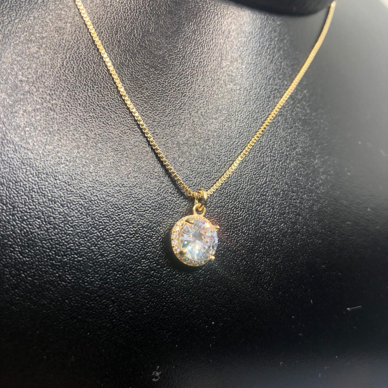 Pedras: Zirconias brancas redondas ao redor de uma zirconia grande branca