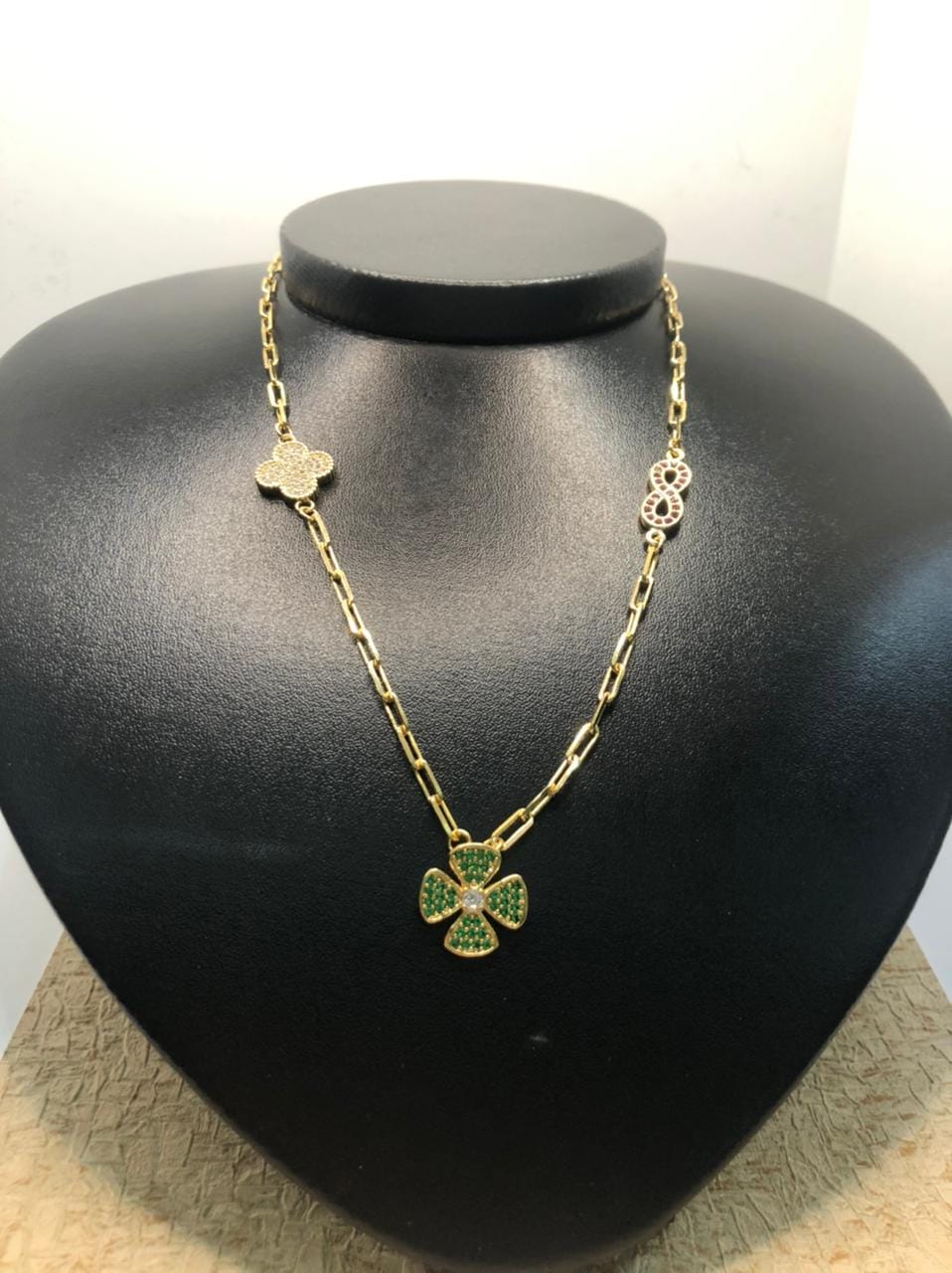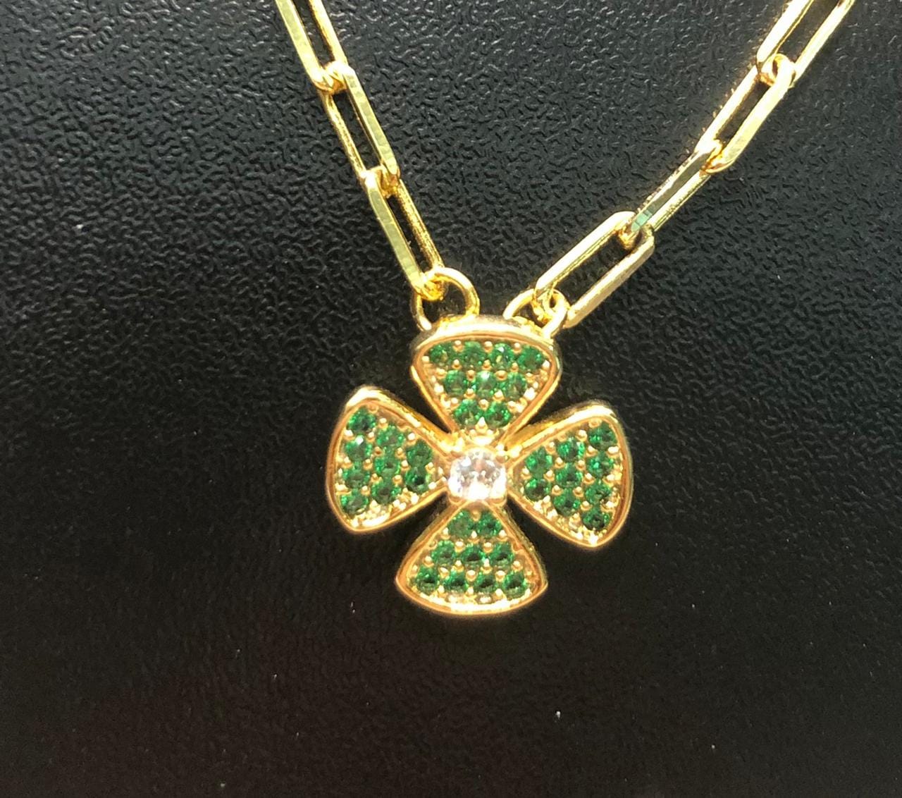 1º – Trevo de quatro trevos todo em zirconias verdes e uma zirconia branca no centro.